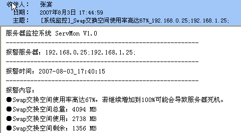 //Swap交换空间报警(Swap交换空间使用率超过60%后会发邮件报警)