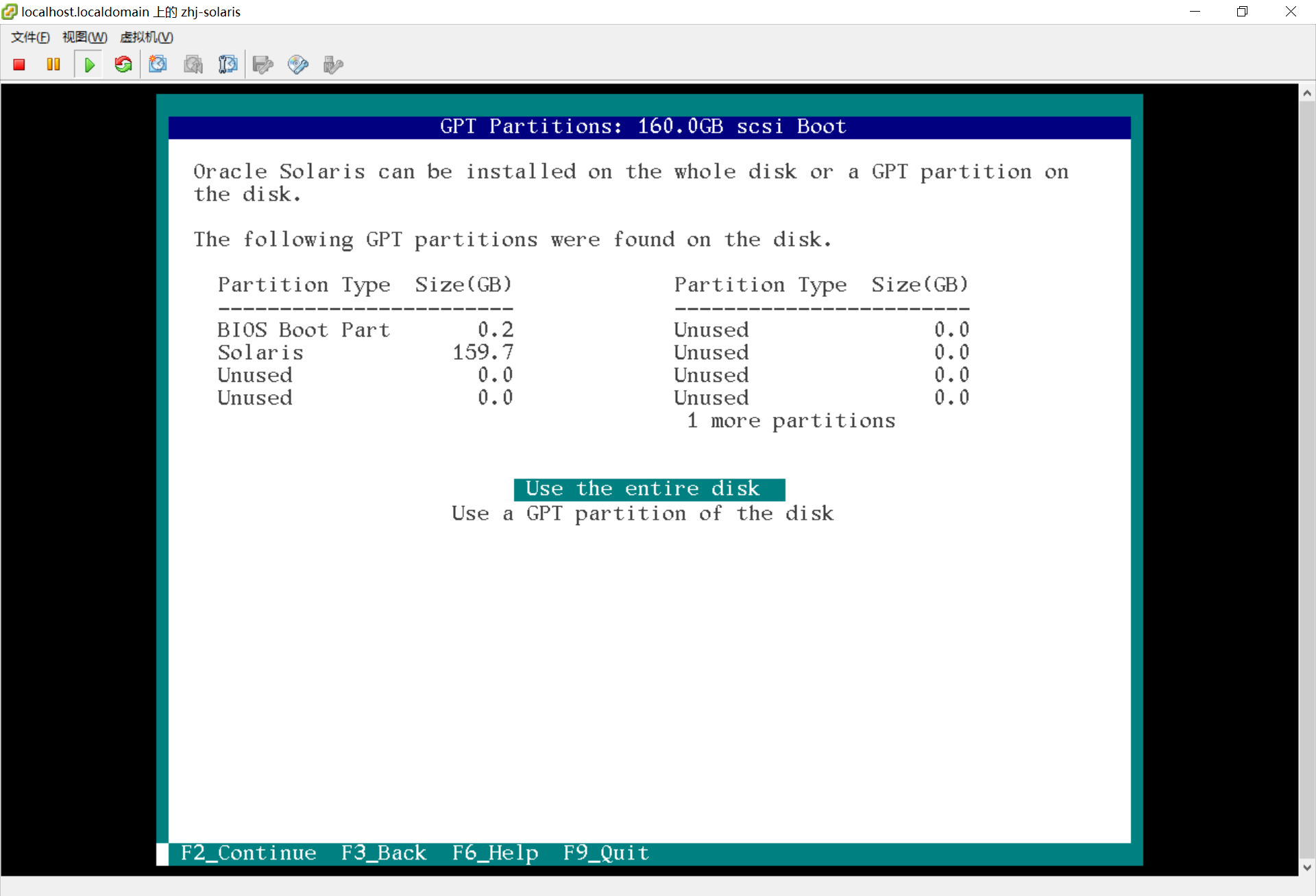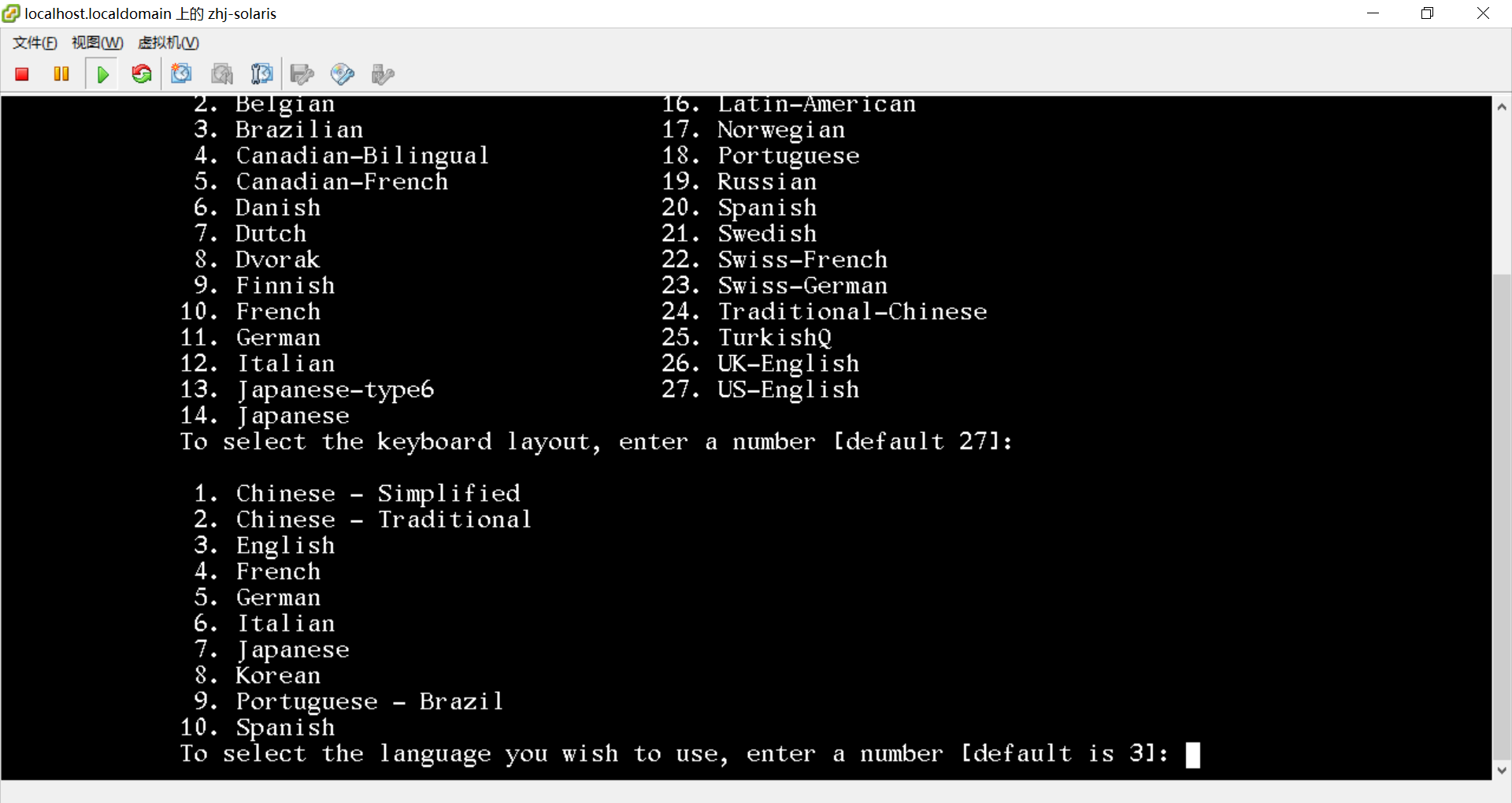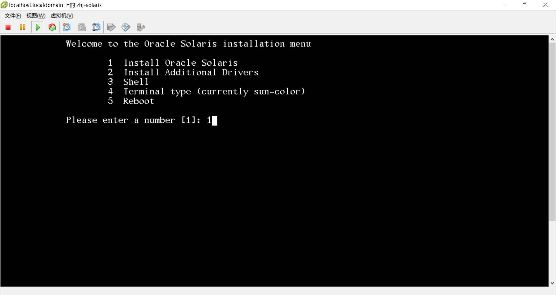第3步:solaris安装菜单栏,有几个选项可以选择,这里是安装系统,所以选择1回车继续下一步