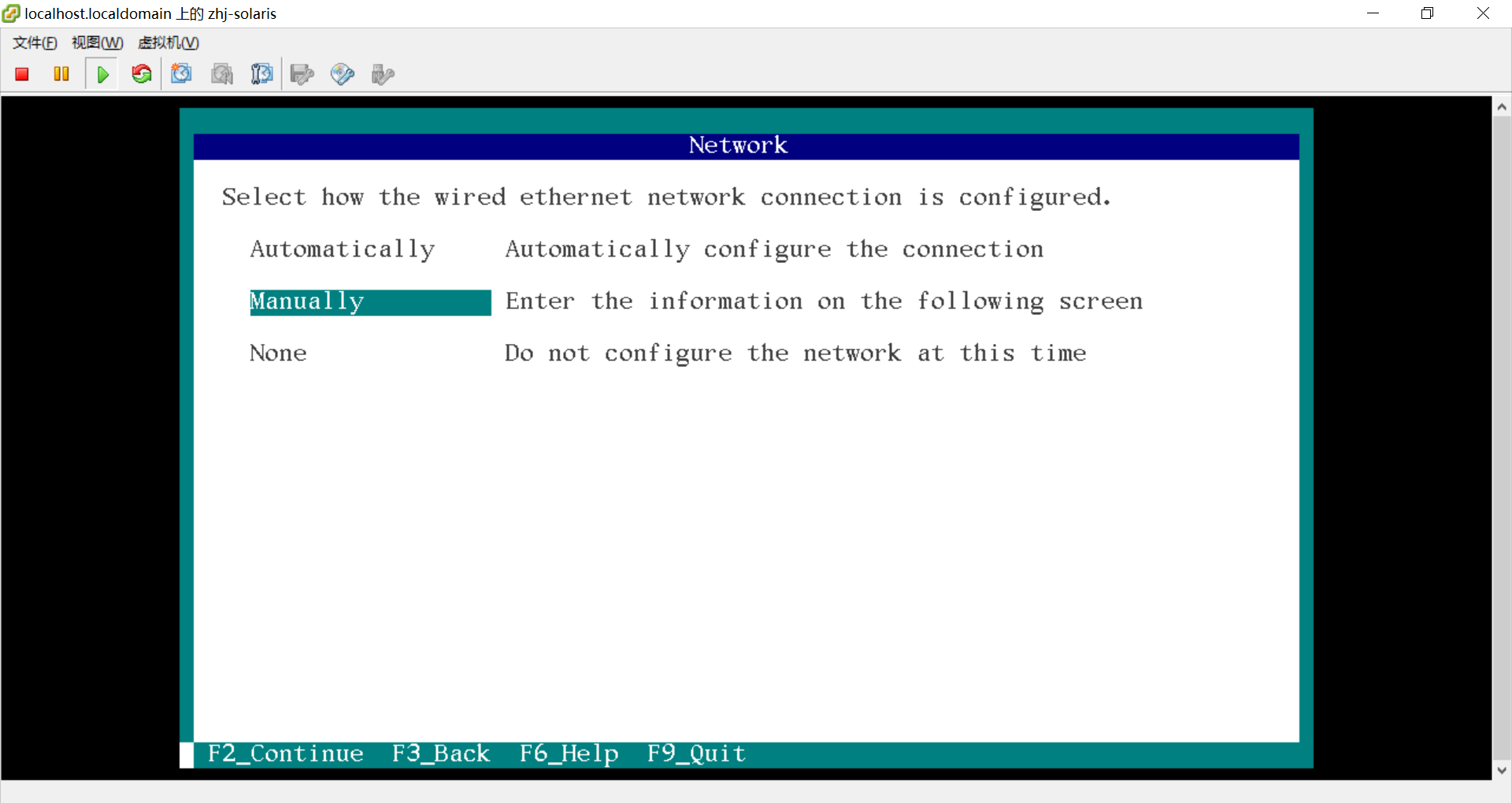 第9步:网络设置,这里选择第二项,手动设置,按F2继续