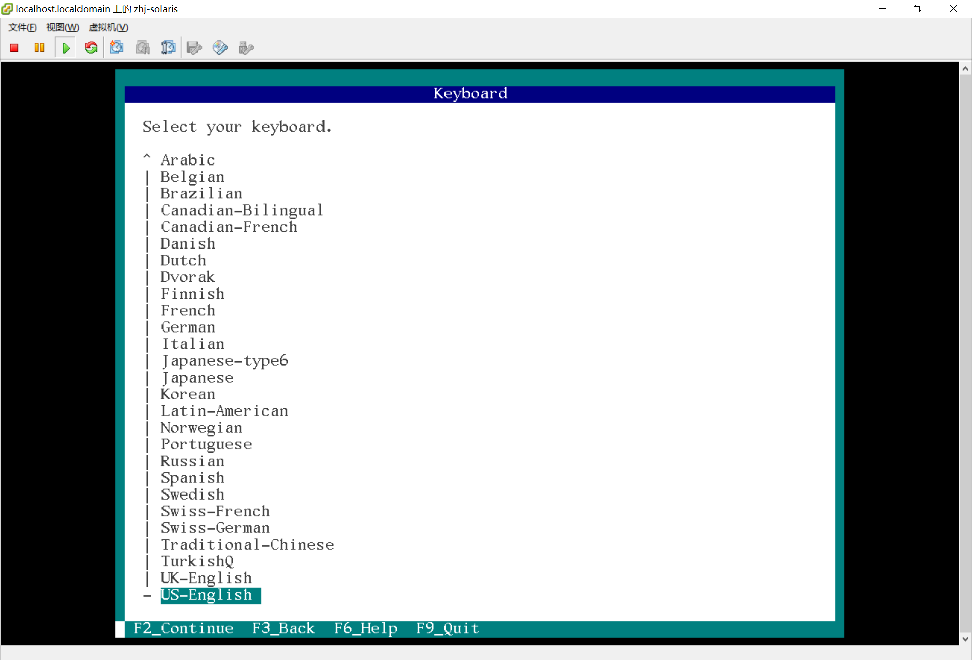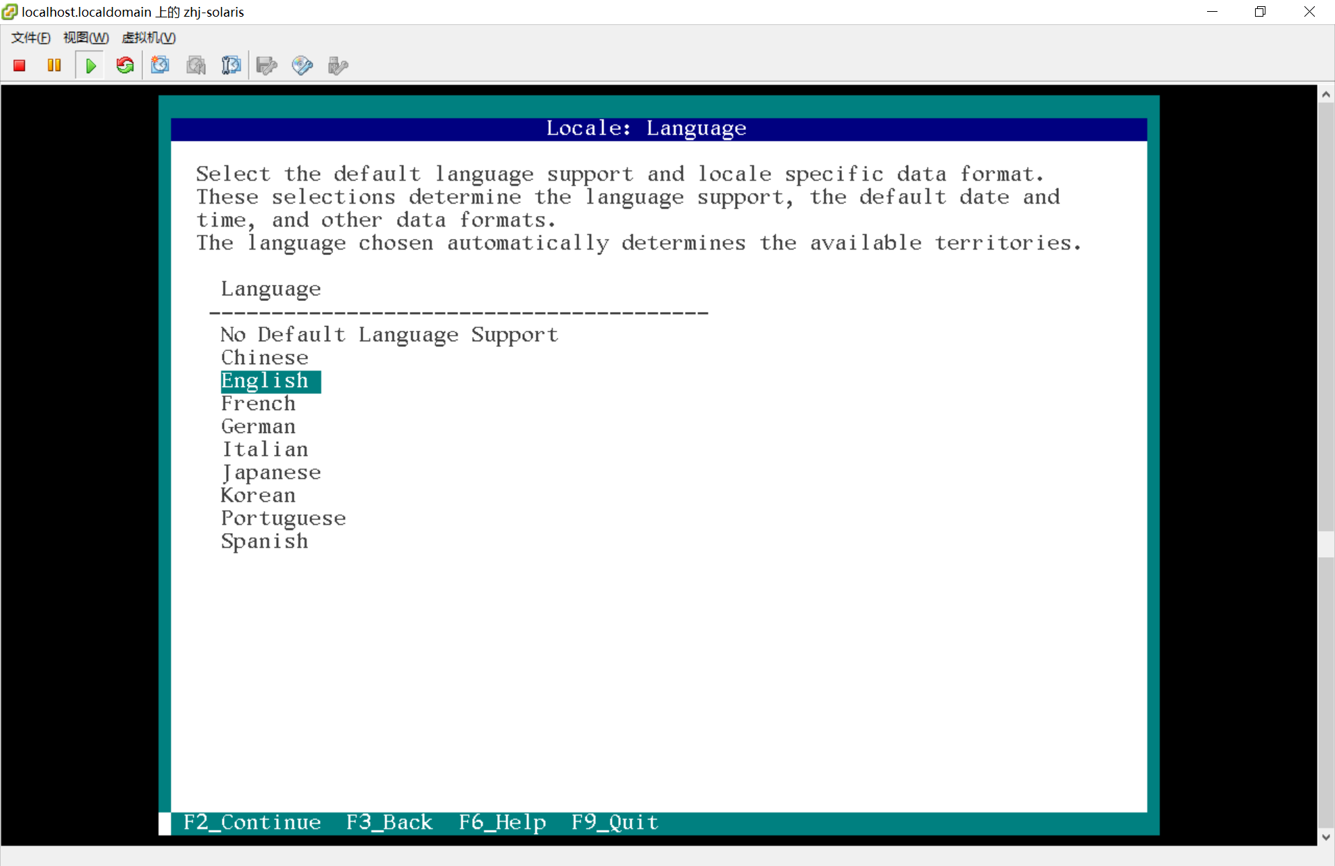 第1步:打开电源进入到solaris系统安装界面,默认选择美式英语,直接回车进入下一步