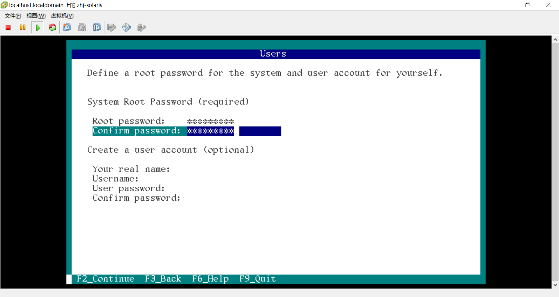 第7步:设置root账户密码,并重复输入root账号密码回车确认。