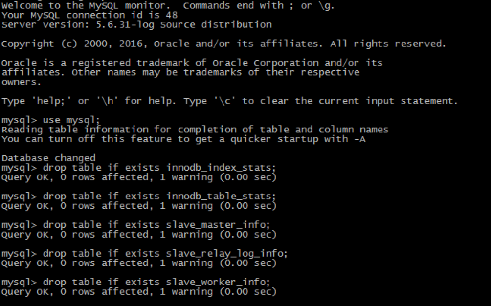 1. drop these tables from mysql: