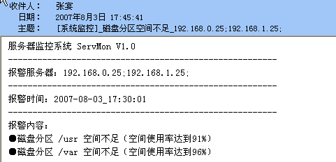 $disk_sendmail_interval = "43200";//如果同一台服务器连续报警,设置每隔多少秒发送一次报警邮件。默认为43200秒,即12小时。