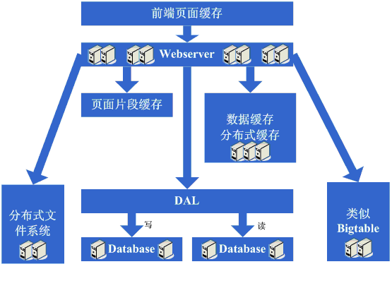 2、原有的一些状态信息同步、文件共享等方案可能会出现瓶颈,需要进行改进,也许这个时候会根据情况编写符合网站业务需求的分布式文件系 统等;