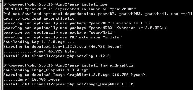 如果没有Image_GraphViz和Log包,使用 pear install Log和pear install Image_GraphViz把这两个包安装了。