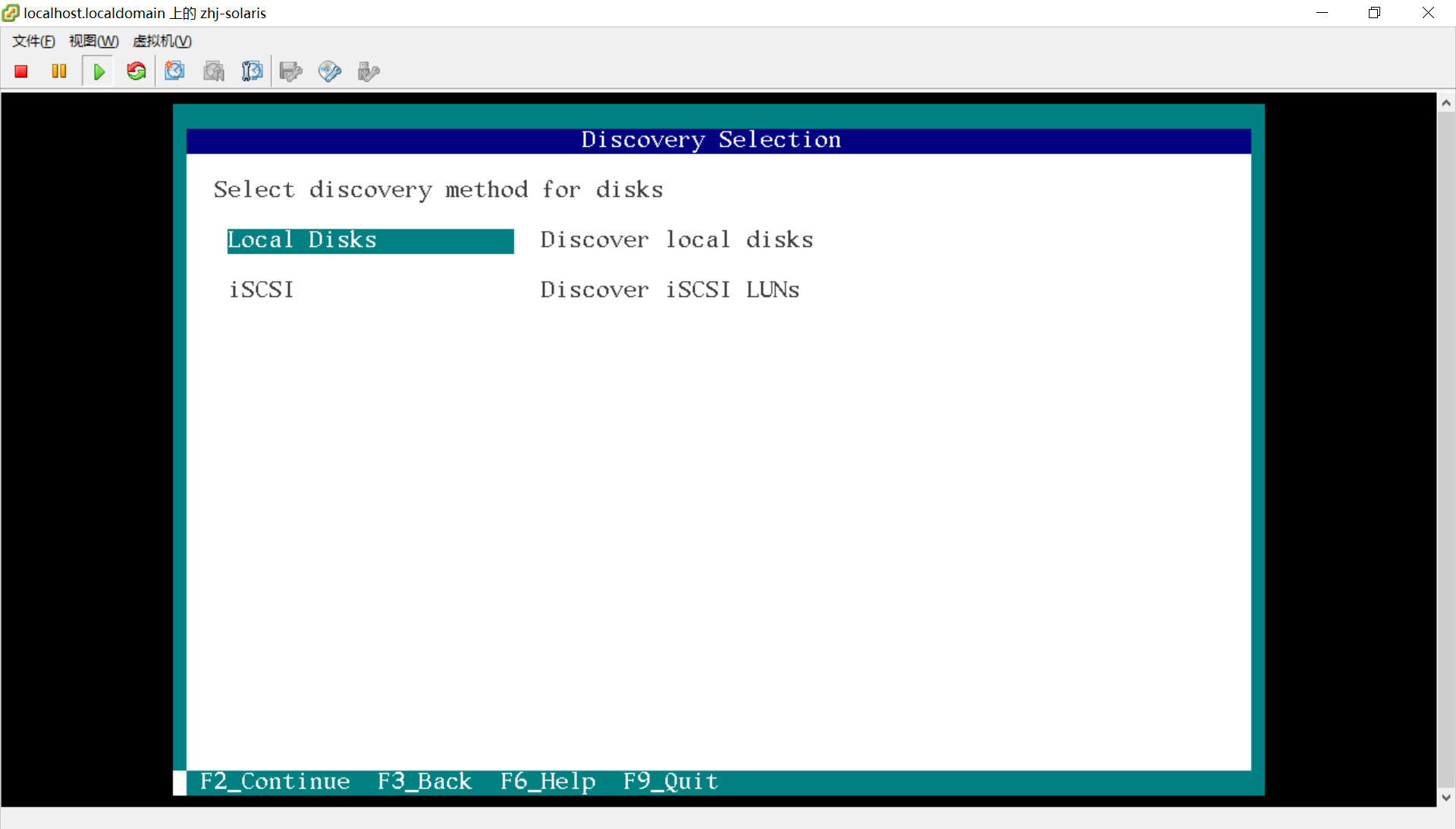 第3步:solaris安装菜单栏,有几个选项可以选择,这里是安装系统,所以选择1回车继续下一步