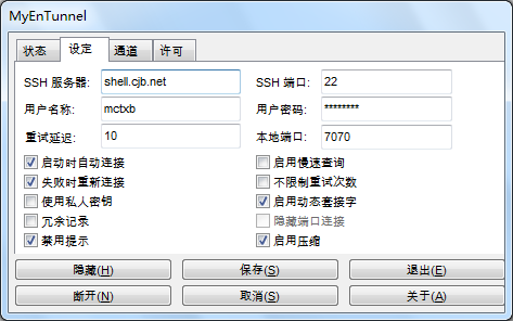然后就是配置下用来翻Wall了,先下载个MyEntunnel[下载在日志底部],MyEntunnel是plink的GUI界面,用来转发 SSH端口~